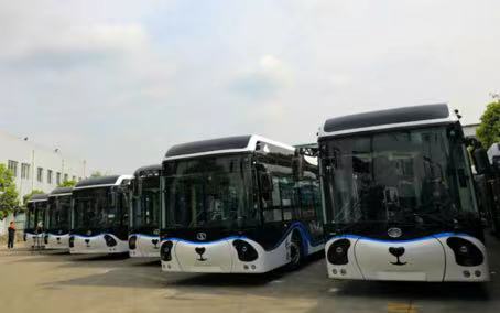 搭载车载智能信息终端整装待发的“熊猫”公交