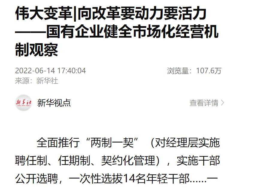锚定“管理职员能上能下、员工能进能出、收入能增能减”目的,,,,,,,,推广司理层成员任期制和左券化管理,,,,,,,,推进市场化用工,,,,,,,,健全激励约束机制;;;;;;;起劲稳妥推进混淆所有制刷新,,,,,,,,坚持以混促改……通过开展国企刷新三年行动,,,,,,,,国资国企正加速形成反应迅速、运行高效、充满活力的市场化谋划机制。。。。。。。