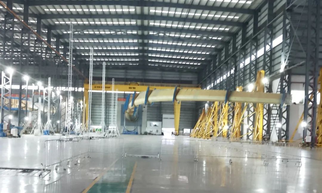 克日,,,,,东方风电自主研制的B1130A型叶片在广东鉴衡阳江风电叶片检测中心顺遂完成静力试验,,,,,是现在海内通过静力试验的最长全玻纤风电叶片。。。。。