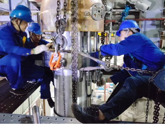 手艺的攻克只是第一步 ,, ,, ,,,屏障泵的装配维修 ,, ,, ,,,则是对精湛武艺和意志力的双重磨练。。。。。。。装配职员必需衣着密不透风的事情服在舱内高温情形下作业。。。。。。。