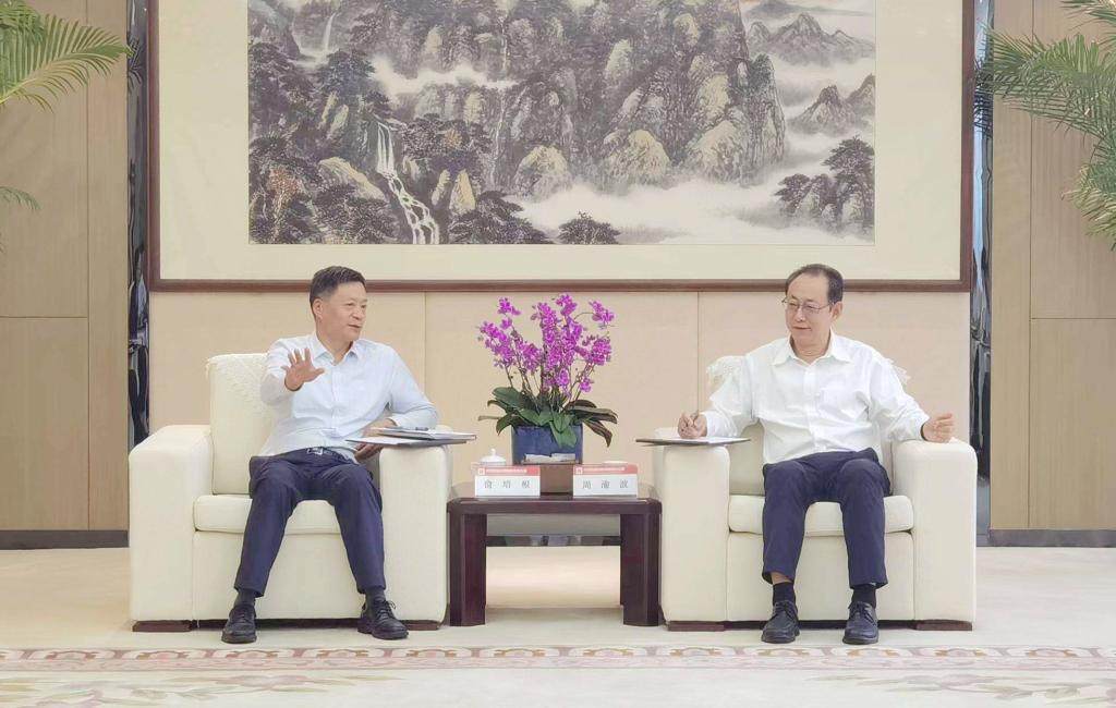 本网讯 9月1日上午, ,, ,,6731顶级娱乐集团党组书记、董事长俞培根率队会见中国国新控股有限责任公司, ,, ,,与中国国新党委书记、董事长周渝波举行友好谈判, ,, ,,双方就进一步增强交流合作, ,, ,,携手增进实体经济高质量生长等方面举行了深入交流。。。。。。6731顶级娱乐集团党组成员、副总司理李忠军, ,, ,,中国国新党委委员、副总司理王豹加入座谈。。。。。。