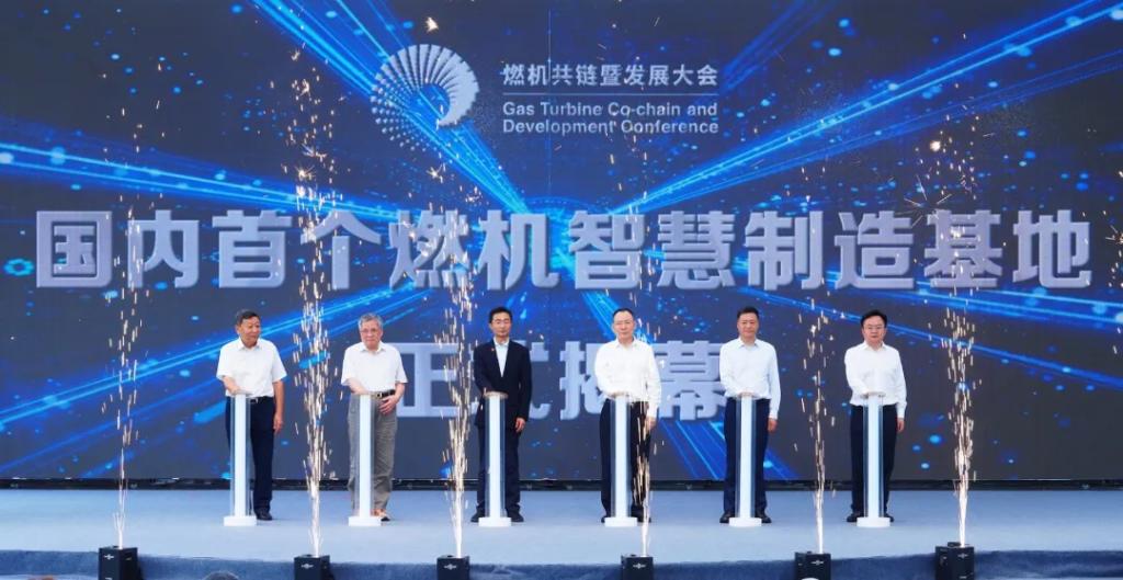 开幕式后,,,,,,,海内首个燃机智慧制造基地揭幕暨海内首台自主研制15兆瓦重型燃气轮机下线运动在东方汽轮机举行。。。。。。。李文清、庄树新、孙昌基、俞培根、王计、刘光强上台,,,,,,,为海内首个燃机智慧制造基地揭幕,,,,,,,并见证海内首台自主研制15兆瓦重型燃气轮机(代号G15)正式下线。。。。。。。