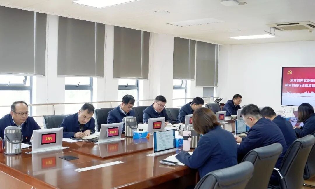 3月16日,,,,,,,东方自控党委以理论学习中心组(扩大)会形式召开树立和践行准确政绩观学习教育专题念书班,,,,,,,深入学习贯彻习近平总书记关于树立和践行准确政绩观学习教育的主要讲话和主要指示精神,,,,,,,进一步强化立党为公、为民造福理念,,,,,,,推动学习教育走深走实。。。。。。。。公司党委书记、董事长陈聪主持聚会并作总结讲话,,,,,,,公司党委理论学习中心组成员加入聚会。。。。。。。。